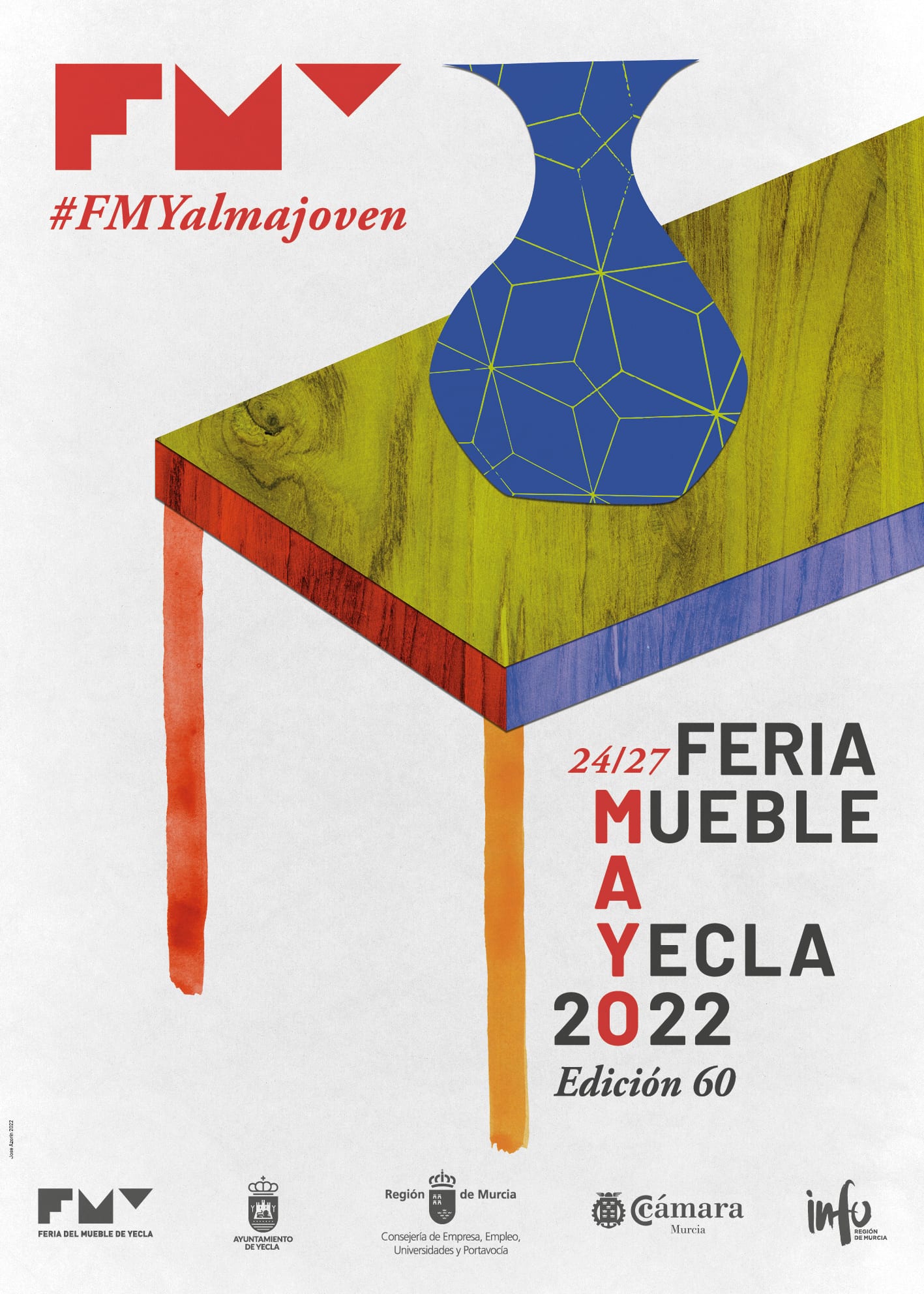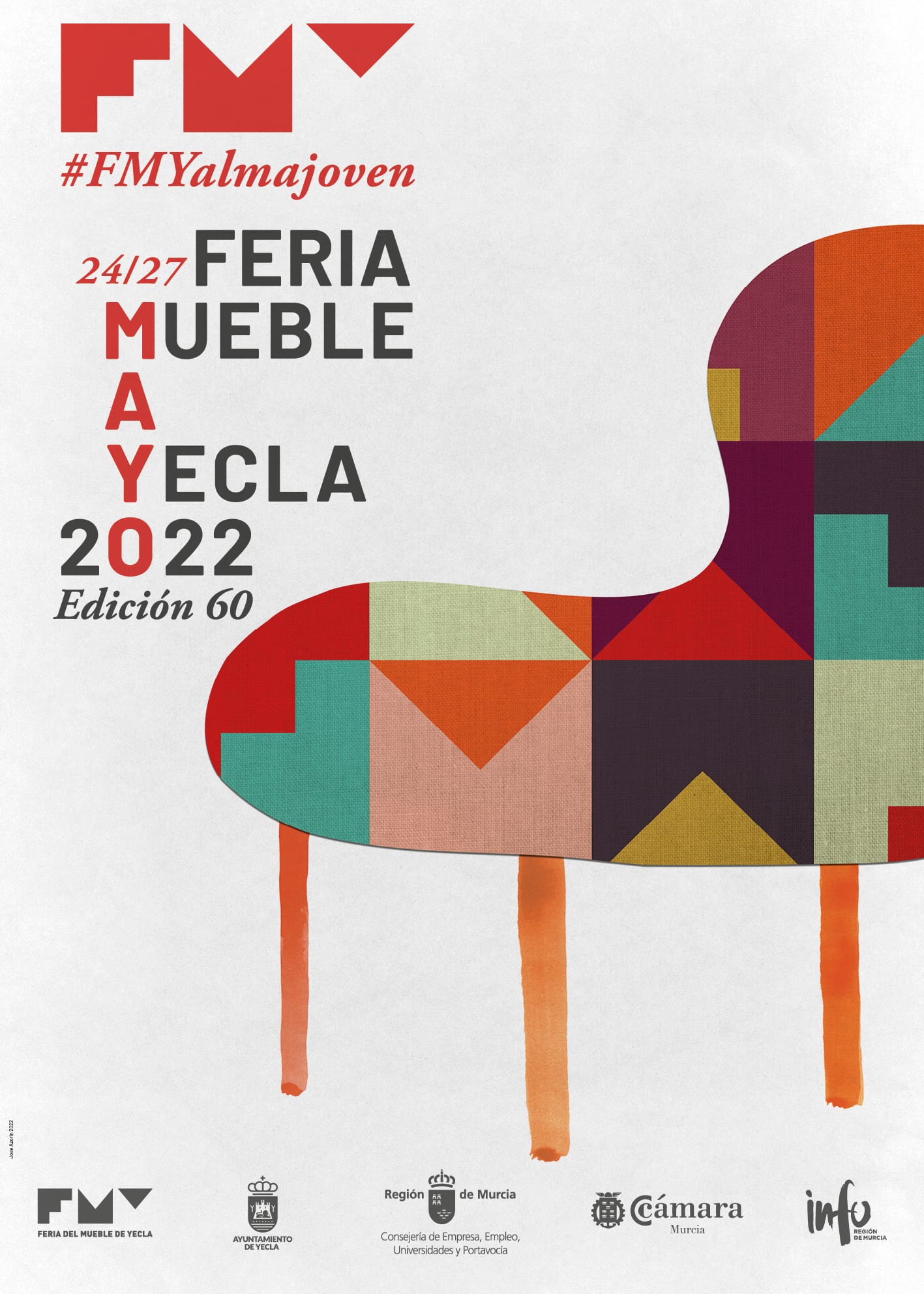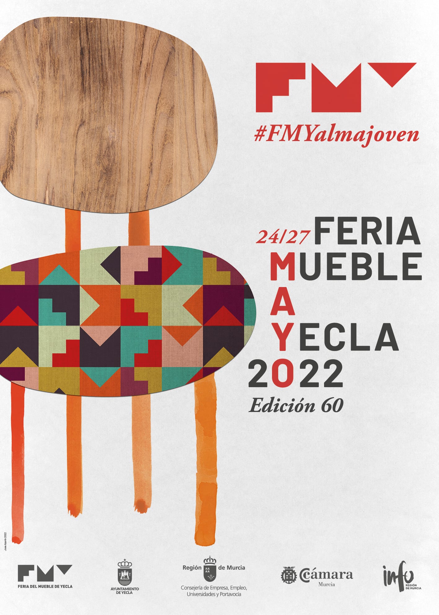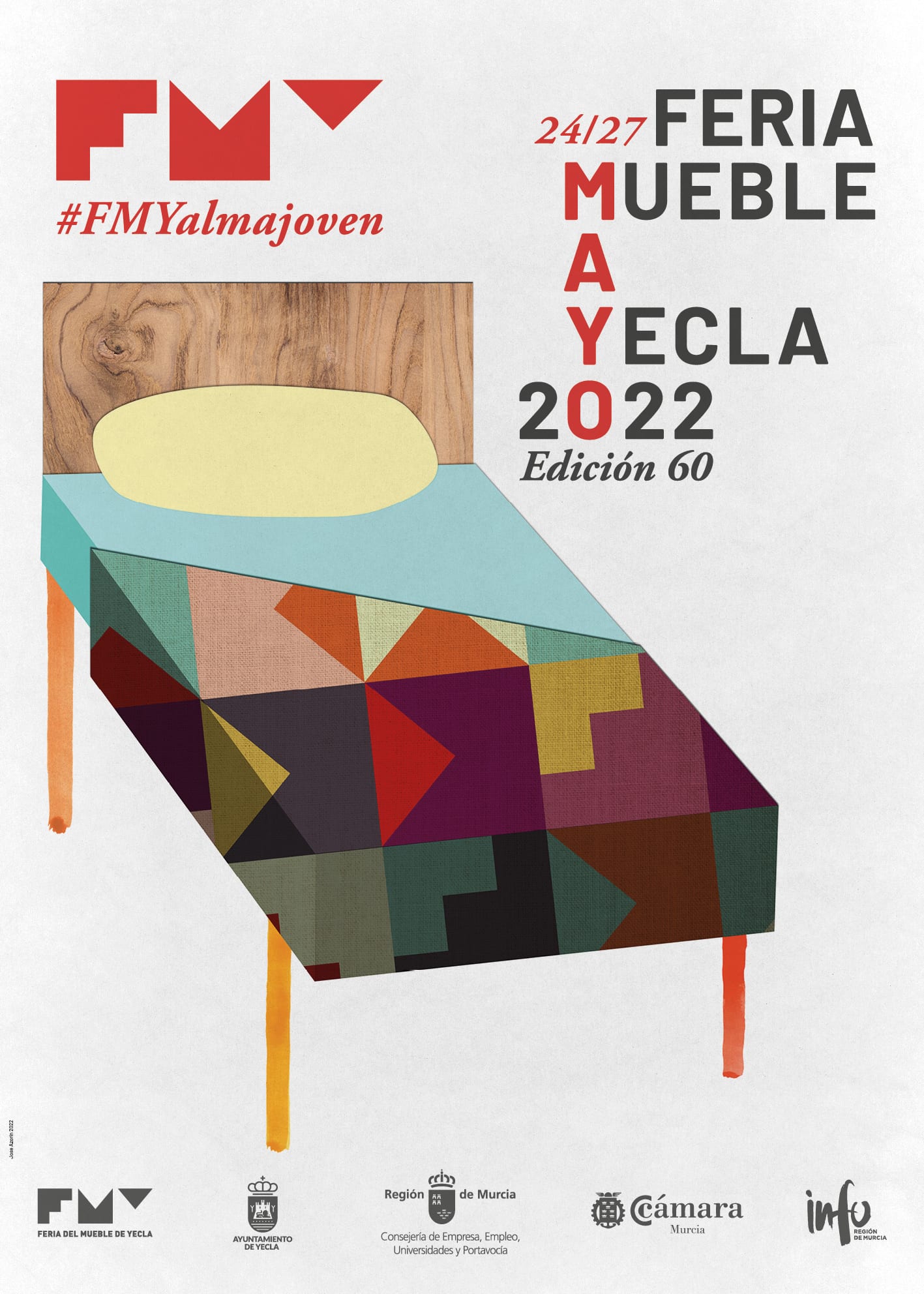 La imagen de esta 60 edición de FMY se basa en una mirada lúdica, divertida y muy colorista en la construcción de piezas representativas de mobiliario. El diseñador ha creado una serie de collages con cierto aire retro y naif combinando texturas, grafismos y trazos orgánicos con patrones confeccionados con la propia identidad de marca de la feria. Un diseño que ofrece un resultado basado en la sencillez y la síntesis, aunque con mucho carácter, potencia gráfica e identidad.