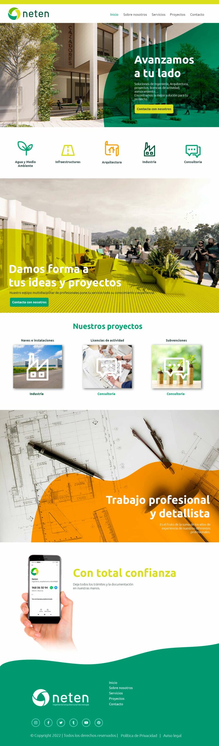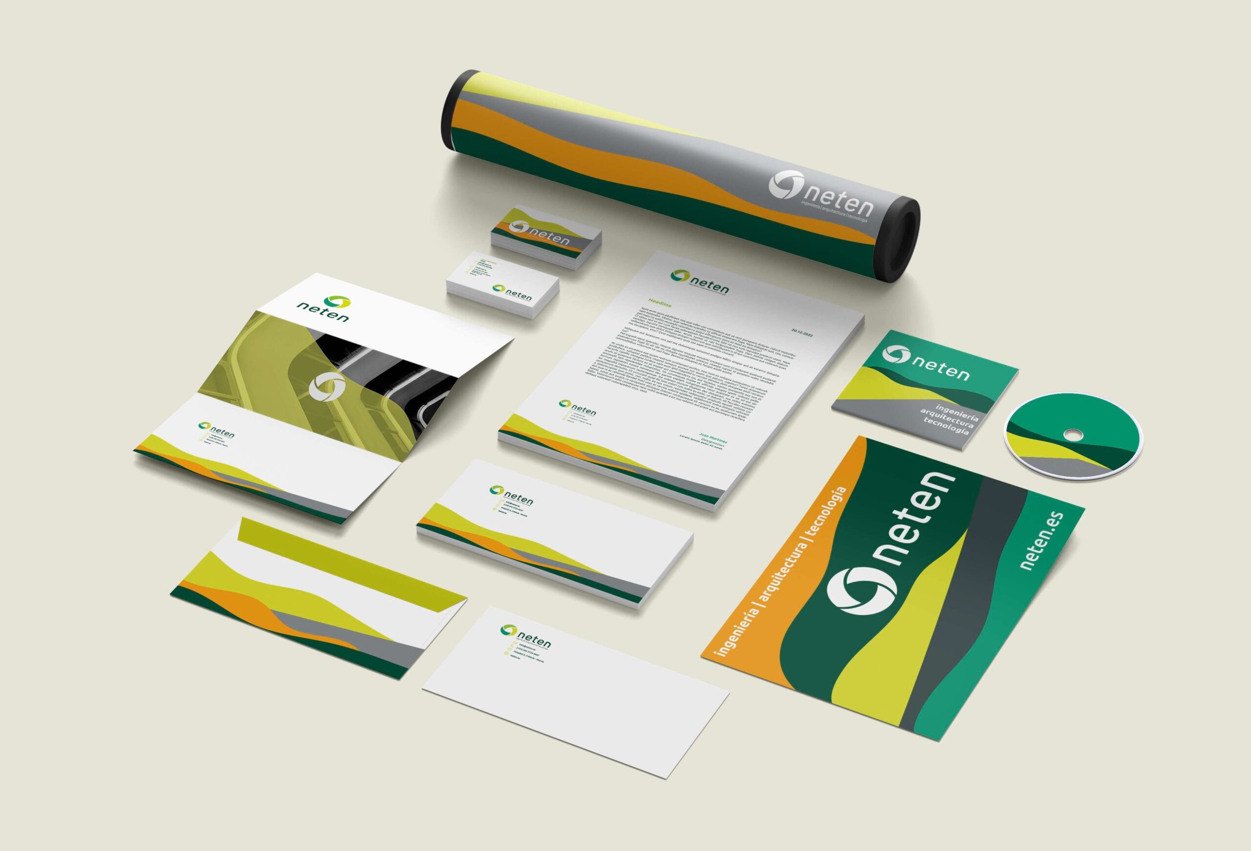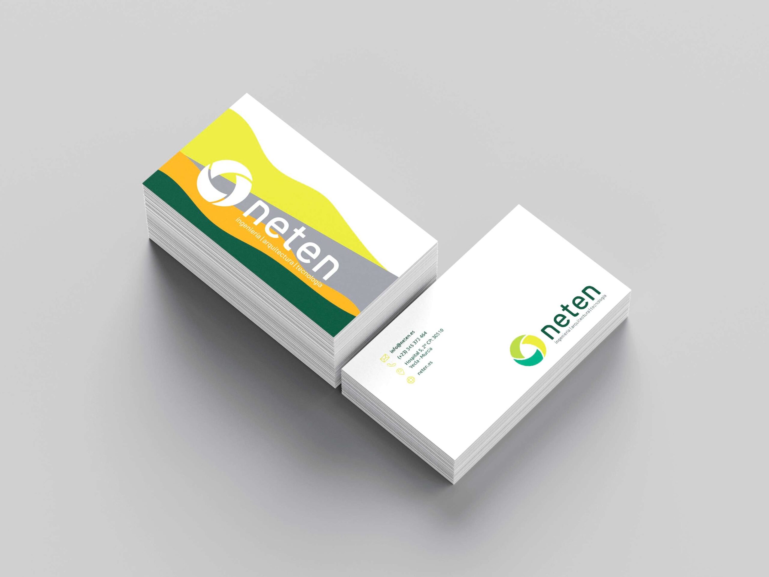 Diseño de marca para la consultoría de ingeniería y arquitectura Neten. Partiendo de un logotipo establecido que fue sometido a un rediseño y estilización, se construyó toda la identidad de marca y contexto gráfico para distintos formatos y aplicaciones.